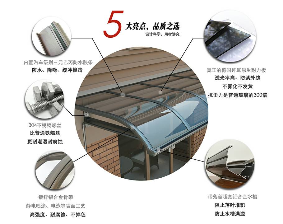 耐力板:真正的德国拜耳原生料耐力板,防止紫外线,抗击力是普通玻璃的300倍;